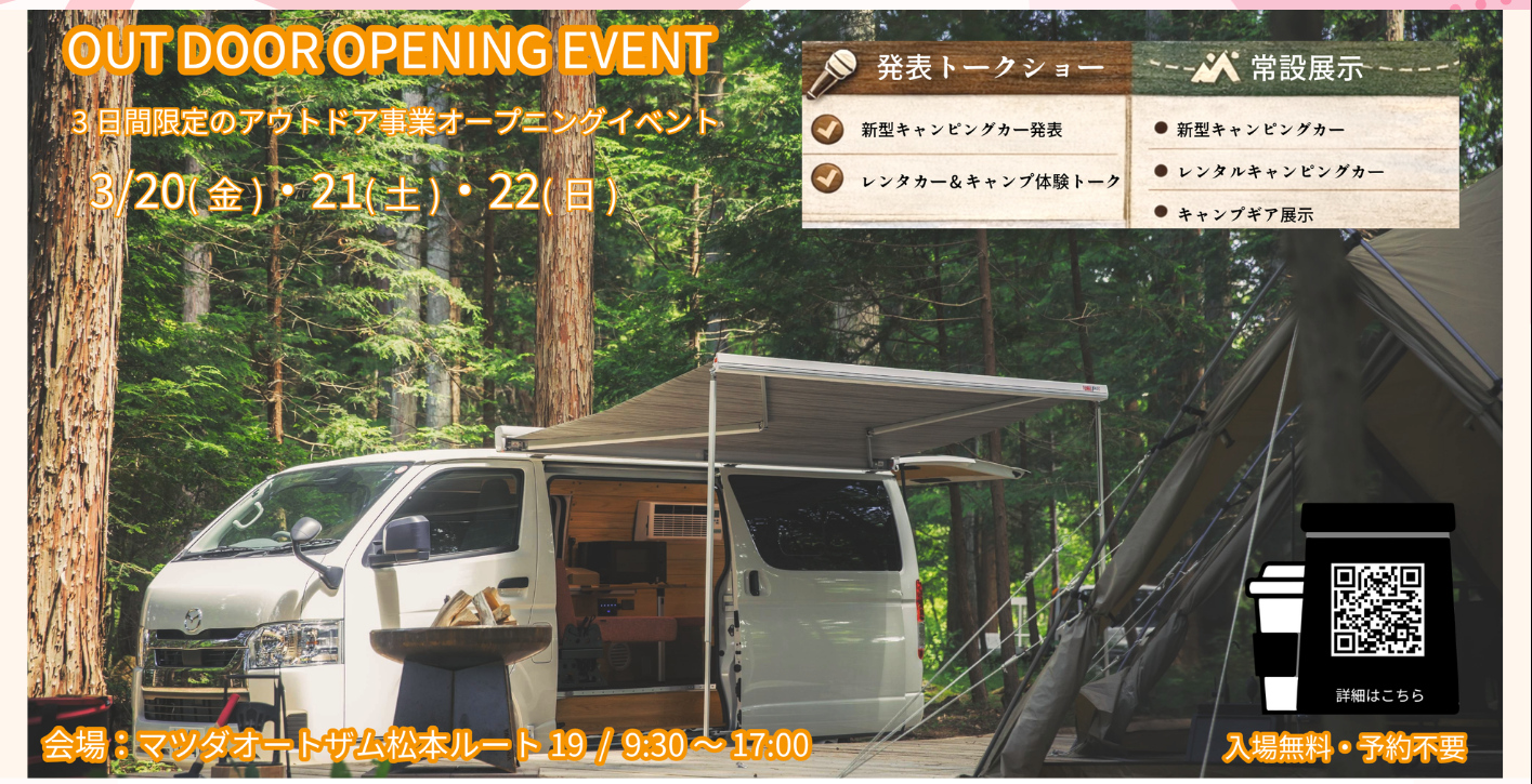 3/20(金)~22(日)3日間は当社が手掛けるアウトドア事業