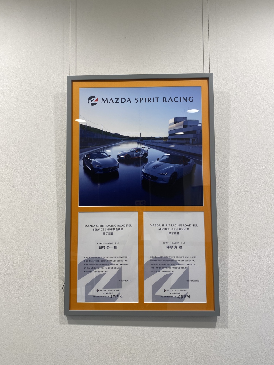 ①MAZDA SPIRIT RACING ROADSTER SERVICE SHOP 認定証