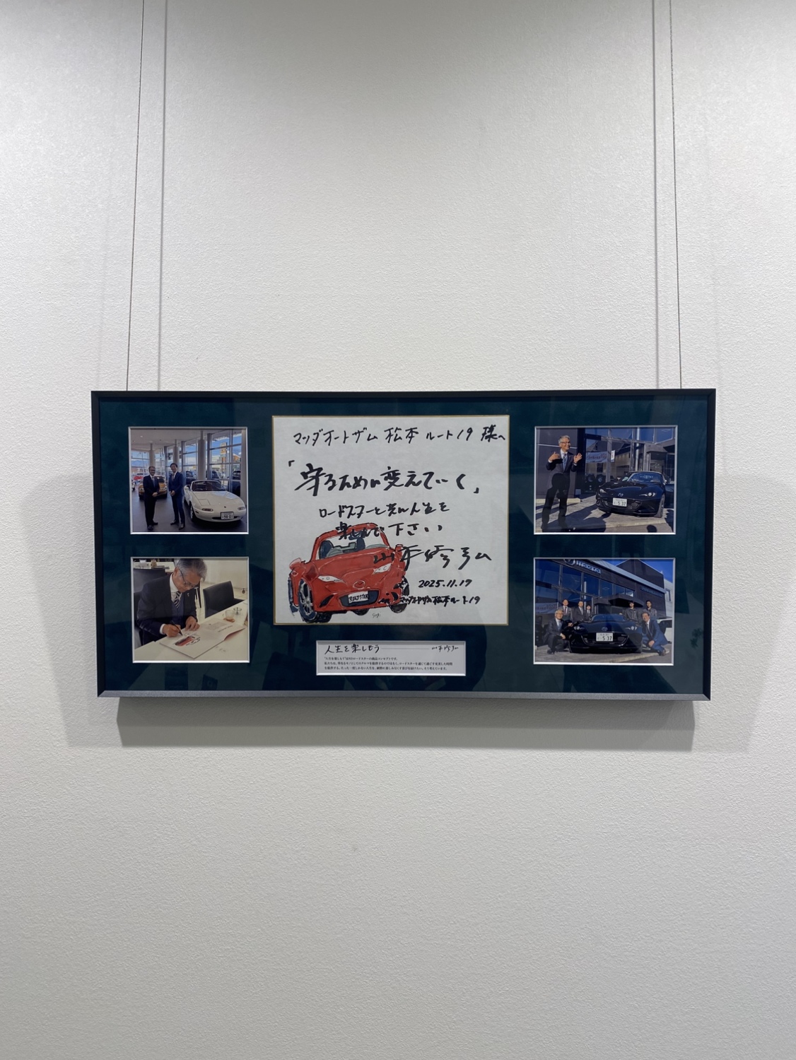 サインいただいた色紙には、当社のお客様で絵を描くことが趣味のSさん作のROADSTERが描かれています。
